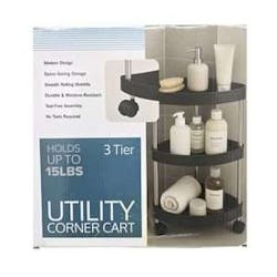The 3-Tier Rolling Corner Cart saves space with its sturdy polypropylene design, smooth wheels, and three 14" corner shelves. Perfect for organizing kitchens, bathrooms, offices, and more.
