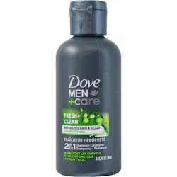 Dove Men+Care Fresh & Clean 2-in-1 shampoo and conditioner deeply cleans and invigorates hair. This men's shampoo for dry hair cleanses and revitalizes to leave hair cleaner, fresher and more manageable. Infused with caffeine and sparkling menthol, this men's 2-in-1 shampoo provides long lasting freshness. Buy in bulk and save!