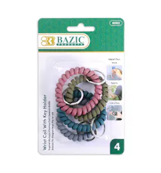 Wrist Coils with Key Holder - 4 Pack, Assorted Colors