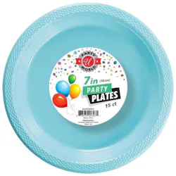 Light Blue Round Plastic Plates, 7 " - 15 Count