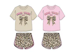 Girls shorts 2-piece set features tan and pink, designed for everyday wear and comfort. Perfect for supplying nonprofits, supporting donation drives, and aiding disaster relief efforts with practical children's clothing. Suitable for a range of ages and community needs, offering value and versatility for your organization or cause. Shop in bulk and save today!